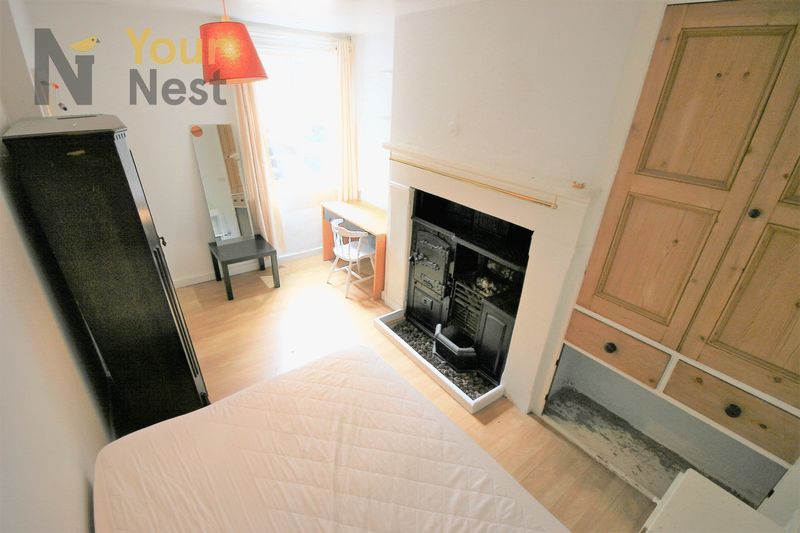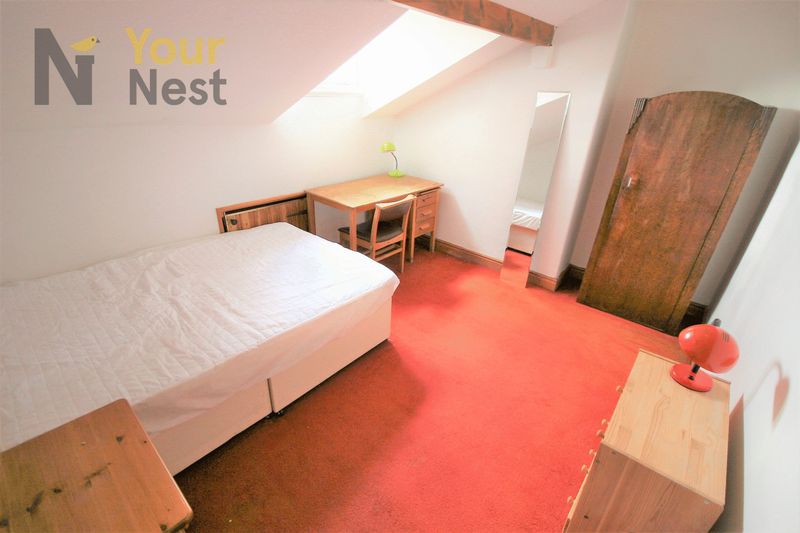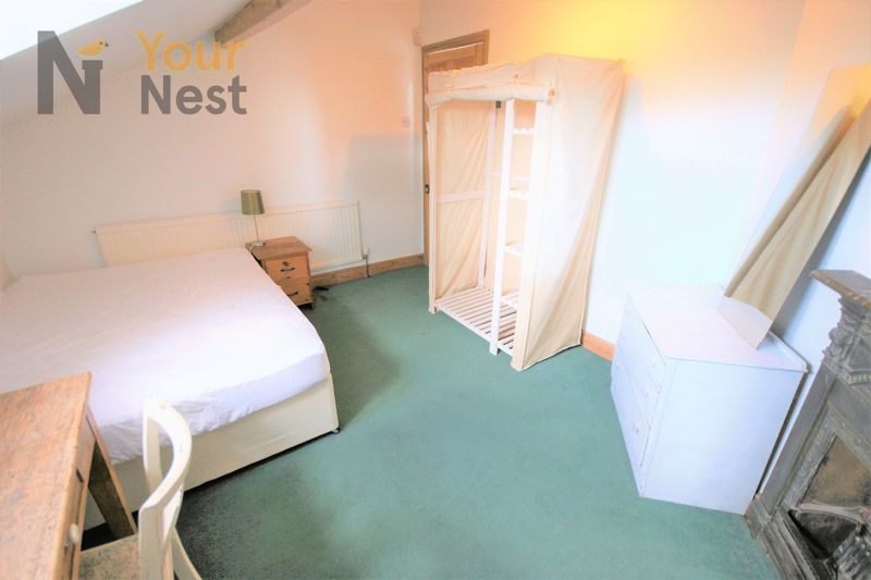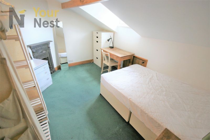 Each of the six double bedrooms is well-furnished with wardrobes, desks, and solid wood features — offering a comfortable and homely atmosphere for studying and relaxing. The bathroom stands out with its incredible wooden panelled bath and separate walk-in shower — adding a touch of traditional charm rare to find in student properties.