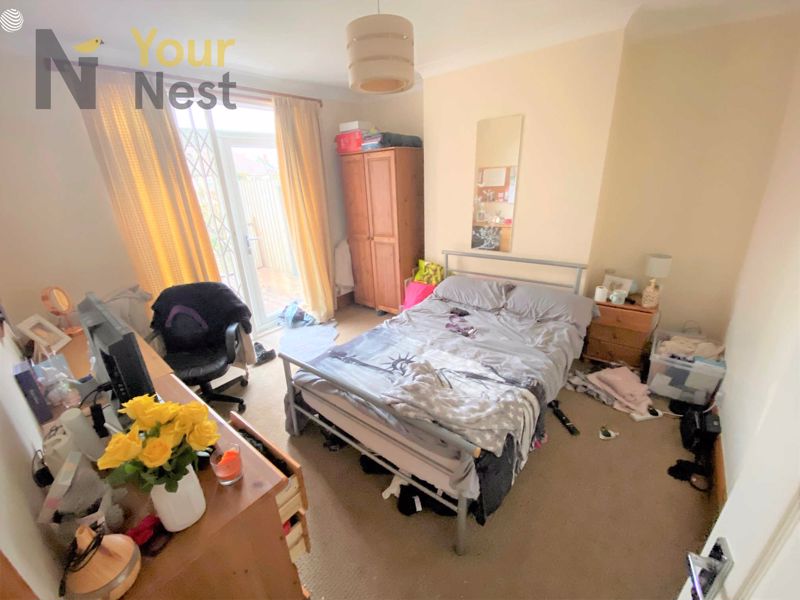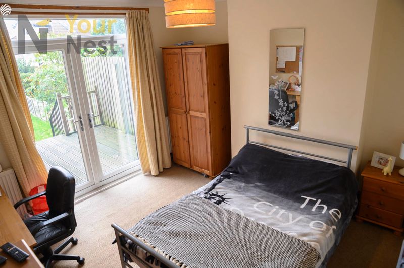 6th bedroom, featuring French doors opening onto a private decked patio – a real suntrap in summer