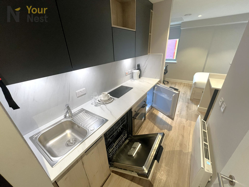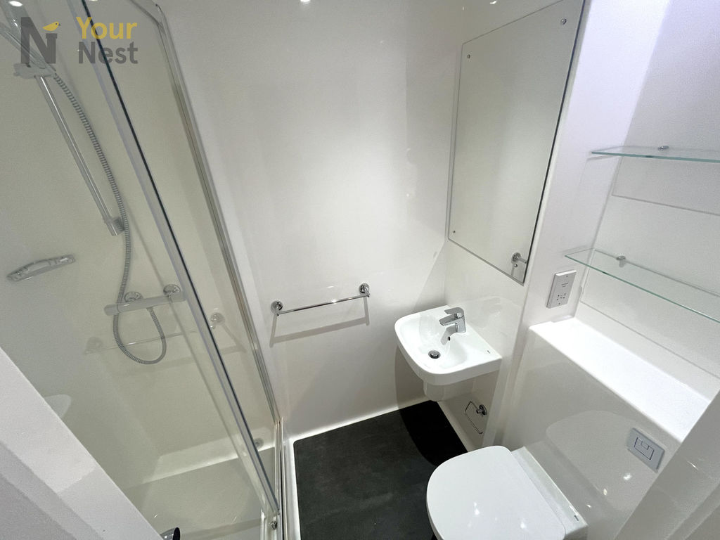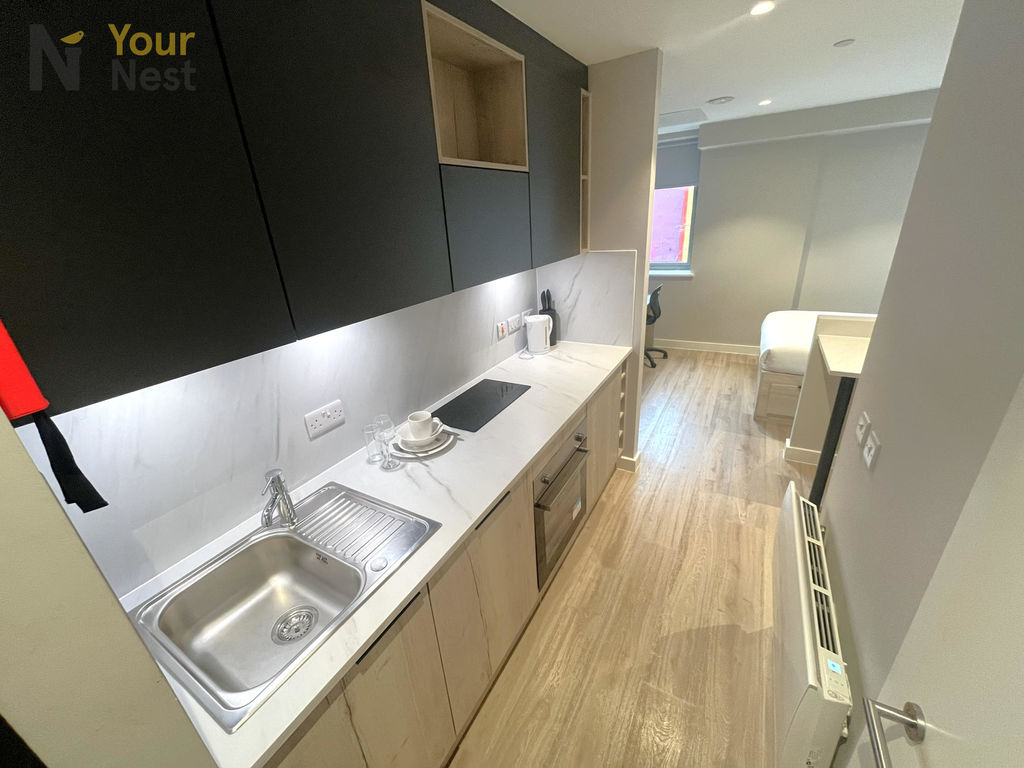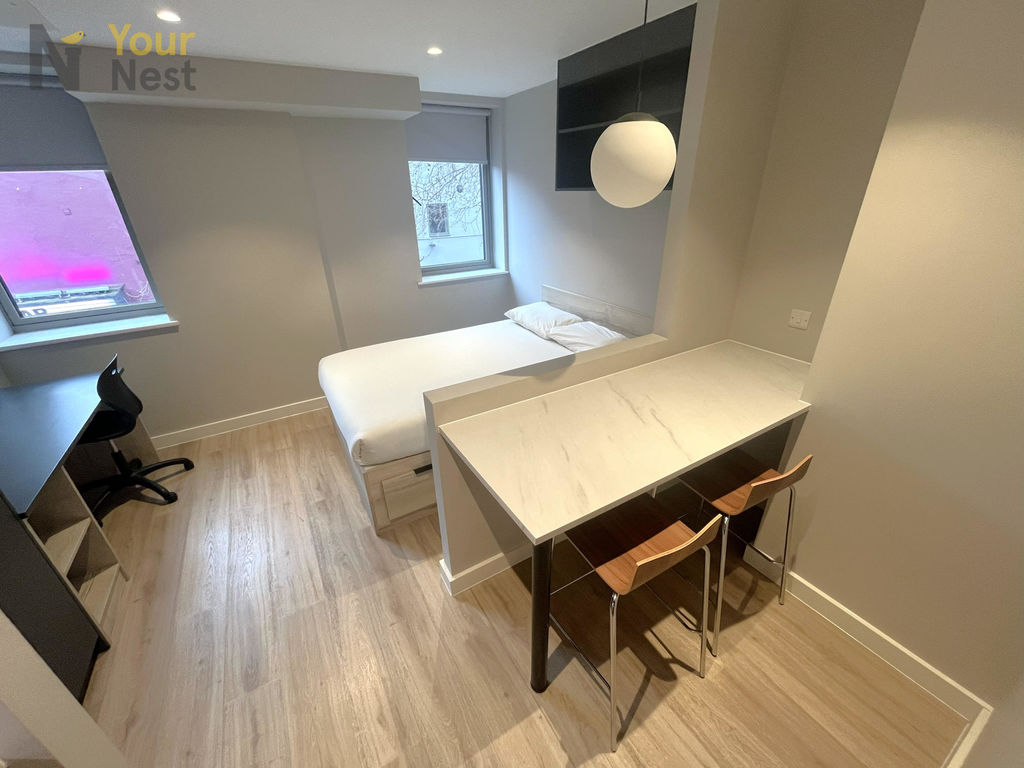 Each modern studio features a private en-suite shower room, fitted kitchenette with integrated appliances, a comfortable sleeping area, study desk, and ample storage. Residents also benefit from secure entry, high-speed Wi-Fi, on-site laundry facilities, and communal social spaces.