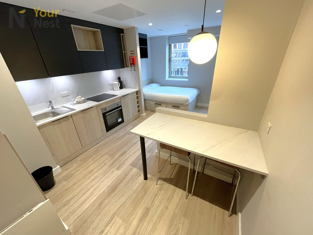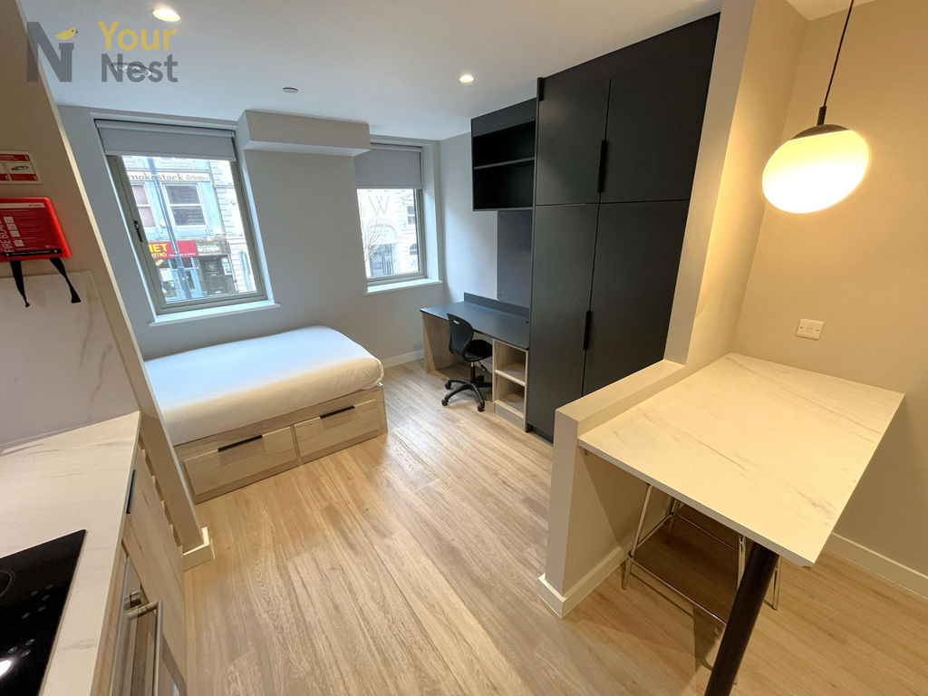 Stylish fully furnished studio apartment located in Briggate Studios in the heart of Leeds. Perfectly positioned within walking distance of University of Leeds, Leeds Beckett University and Leeds Arts University, making it an ideal home for students.