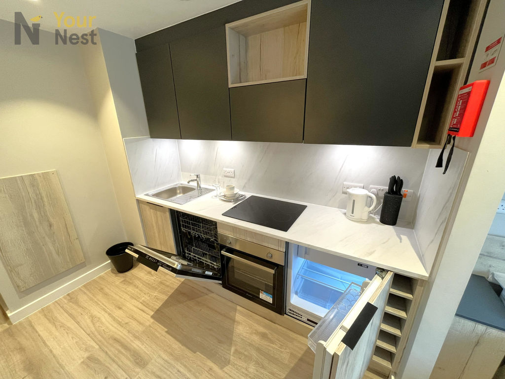 Each modern studio features a private en-suite shower room, fitted kitchenette with integrated appliances, a comfortable sleeping area, study desk, and ample storage. Residents also benefit from secure entry, high-speed Wi-Fi, on-site laundry facilities, and communal social spaces.