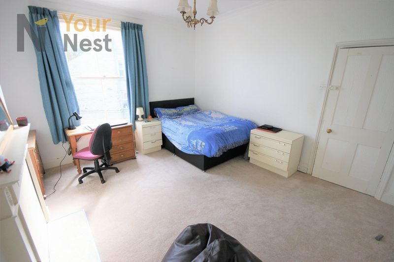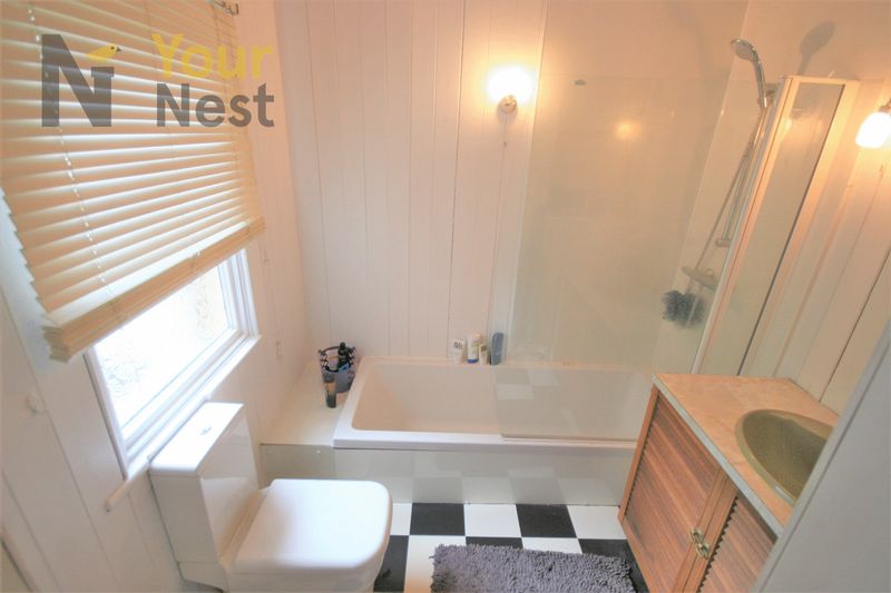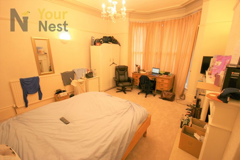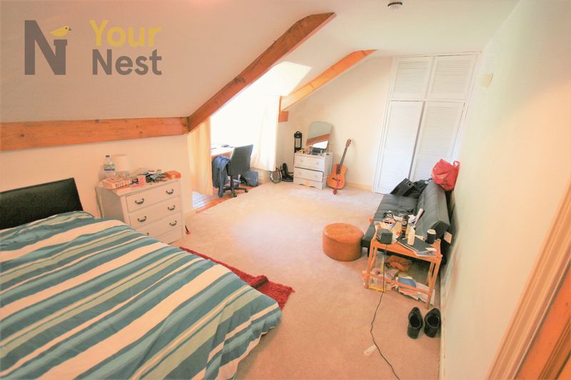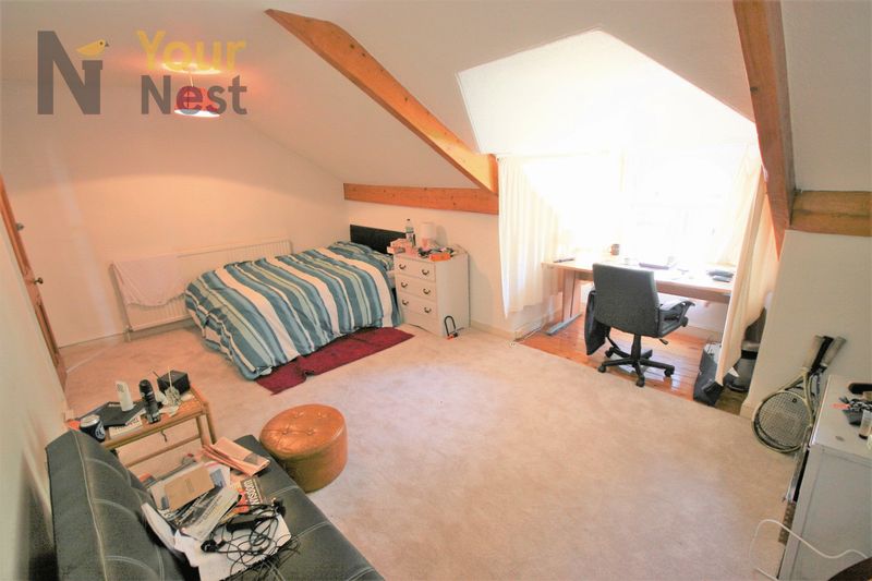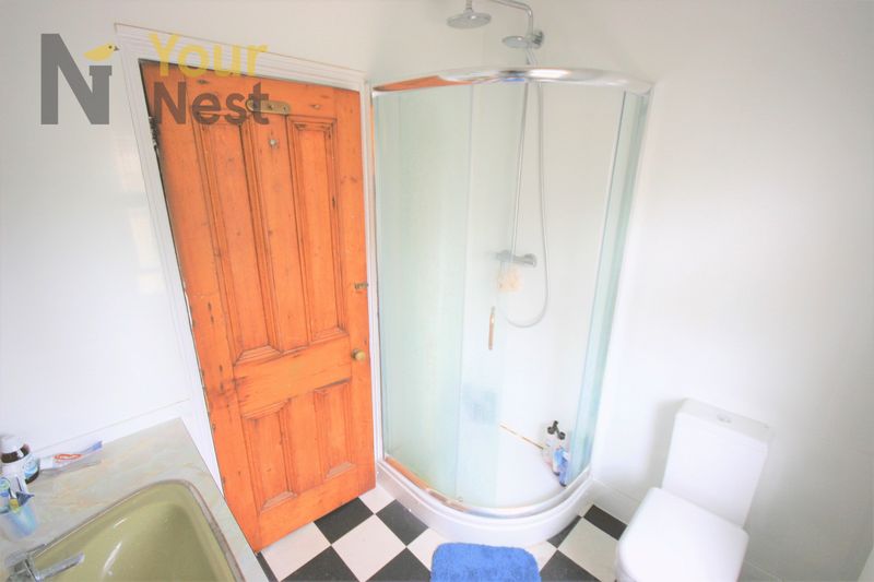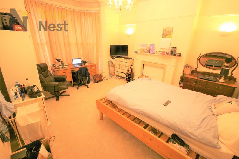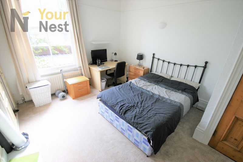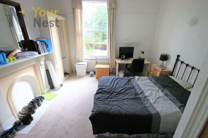 Upstairs, the bedrooms are far larger than the average student property, each fully furnished with desks, wardrobes, and double beds. With a mix of light, modern finishes and original period features, every room feels individual and comfortable. The bathrooms are equally impressive, offering both bath and shower options with clean, modern décor and classic checkerboard flooring.