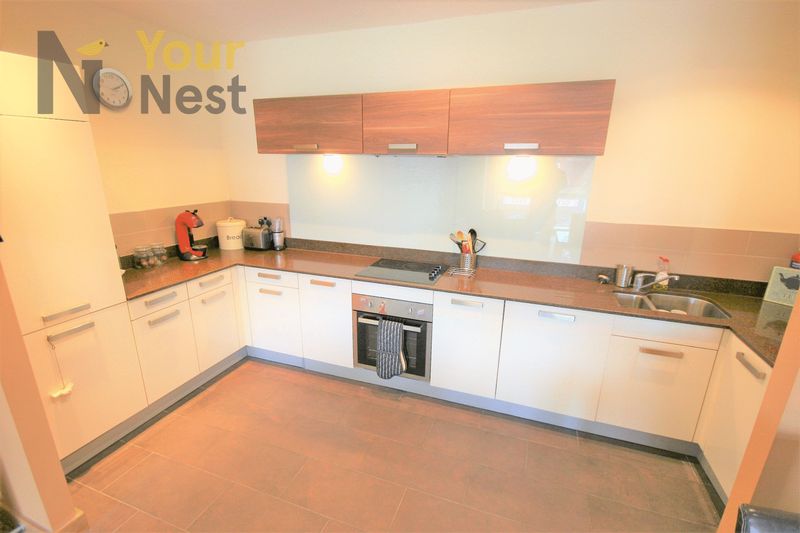 The apartment itself is an incredibly spacious and is flooded with natural light. The open plan living area comes complete with leather sofas and a modern dining table and chairs perfect for entertaining. The white gloss kitchen is truly stunning and has fully integrated appliances including a dishwasher, fridge freezer, washing machine, oven and hob.